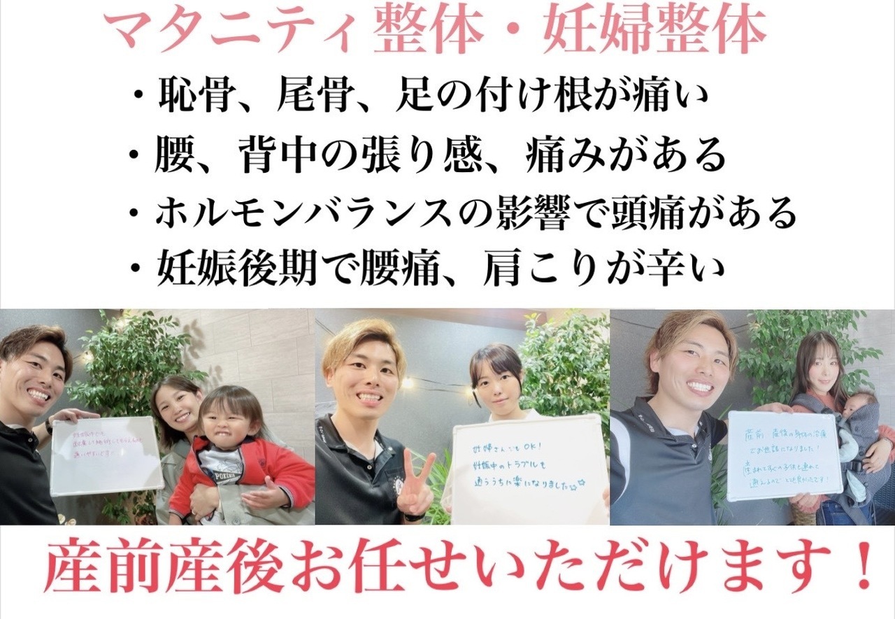 また、産後骨盤矯正やマタニティケアにも対応しており、お子様連れでも安心してご来院いただけます。